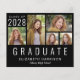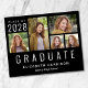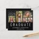 Budgetvänlig svart examensannonsering för honom eller henne med en 5-bildsfoto collage och "Examinerad" skriven längst ner i stora vita versaler. Lägg till hans eller hennes examensår, namn och skola eller universitet i enkel vit typografi.