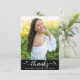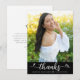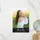 Svart examensfoto Modern elegant script hjärta Tack Kort