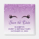 Spara datum magneter med trendigets snyggt. Bakgrunden är en lila gradient färg med en bild av faux mousserande glitter som tappar från överkanten. Ett par giftigt söta ögonfransar under bilden av glitter.