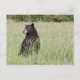 American Black Bear står på sin ben för att få en bättre bild i fält på Timothy-gräset.