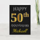 Svart, Falskt Guld 50-års bröllopsdag + Namn Kort