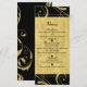 Svart & falskt guld blomsterkrull elegant bröllopsmenykort. Matchande artiklar finns tillgängliga.