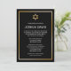 En klassisk Bar Mitsva-inbjudan med en Davidstjärna-design i falskt guld och svart. Modern och formell inbjudan som lätt kan anpassas för din händelse. Designen är platt tryckta illustrationer/grafik - INTE FAKTISKT GULDFOLIE.