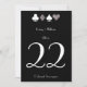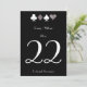 Perfekt för ett kasino-inspirerat bröllop eller fest, detta svarta bordnummer är lätt att anpassa med många textfält för evenemangets namn, parets namn, bordnamn och bordnummer.