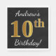 Svart, Faux Guld 10:e födelsedag + eget namn Pappersservett