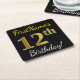 Svart, faux Guld 12:e-födelsedag + eget namn Underlägg Papper Kvadrat