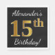 Den här enkla pappra napkin-designen innehåller ett meddelande som "Alexander's 15 Birthday!", där "15:e" har ett faux-guld-liknande utseende på en svart färgad. Namn kan vara personlig. Den skulle kunna användas i en födelsedagsfest till någon som firar sin femtonde födelsedag. [~Z0000079]