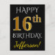 Svart, Faux Guld 16:e födelsedagen + eget namn Vykort