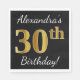 Den här enkla pappra napkin-designen innehåller ett meddelande som "Alexandra’s 30års födelsedag!", där "30:e" har ett utseende som liknar guld, på en svart färgad. Namn kan anpassas. Den skulle kunna användas i en födelsedagsfest till någon som firar sin trettioårsdag. [~Z0000079]