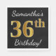 Svart, Faux Guld 36:e födelsedag + eget namn Pappersservett