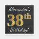 Den här enkla pappra napkin-designen innehåller ett meddelande som "Alexander's 38 Birthday!", där "38:e" har ett faux-guld-liknande utseende på en svart färgad. Namn kan anpassas. Den skulle kunna användas i en födelsedagsfest till någon som firar sin trettioåttonde födelsedag. [~Z0000079]