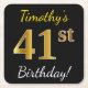 Svart, Faux Guld 41:a födelsedag + eget namn Underlägg Papper Kvadrat