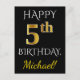 Svart, Faux Guld 5:e födelsedagen + eget namn Vykort