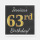 Den här enkla pappra napkin-designen innehåller ett meddelande som "Jessica's 63 Birthday!", där "63:e" har ett faux guld-liknande utseende på en svart färgad. Namn kan anpassas. Den skulle kunna användas i en födelsedagsfest till någon som firar sin sextiotredje födelsedag. [~Z0000079]