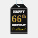 Svart, Faux Guld 66:e födelsedag + eget namn Presentetikett