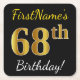 Den här enkla pappra underlägg designen innehåller ett meddelande som "FirstName's 68 Birthday!", där "68:e" har ett utseende som liknar guld/imitation, som liknar färg, på en svart färgad. Namn kan anpassas. Personlig pappra underlägg som dessa skulle kanske kunna användas i en födelsedagsfest till någon som firar sin sextioåttonde födelsedag. [~Z0000194]