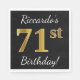 Den här enkla pappra napkin-designen innehåller ett meddelande som "Riccardos 71:a födelsedag!", där "71:a" har ett faux-guld-liknande utseende på en svart färgad. Namn kan vara personlig. Den skulle kunna användas i en födelsedagsfest till någon som firar sin sjuttioårsdag. [~Z0000079]