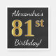 Svart, Faux Guld 81:a födelsedag + eget namn Pappersservett