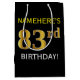 Den här enkla födelsedagspressdesignen innehåller ett personlig som "NMEHERE's 83:e BIRTHDAY!" (med "83:e" som har ett utseende som påminner om guld) på en svart färgad. Namn är i fet gult-färgad och kan vara personlig. En sådan här personlig-födelsedagspressepåse skulle kanske kunna användas när en present till någon som firar sin åttiotredje födelsedag är ge. [~Z0000252]