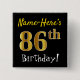 Svart, Faux Guld 86:e födelsedagen, med eget namn Knapp