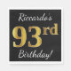Den här enkla pappra napkin-designen innehåller ett meddelande som "Riccardos 93:e födelsedag!", där "93:e" har ett faux-guld-liknande utseende på en svart färgad. Namn kan vara personlig. Den skulle kunna användas i en födelsedagsfest till någon som firar sin nittiotredje födelsedag. [~Z0000079]