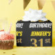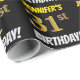 Den här pappra designen innehåller ett meddelande som "JENNIFER'S 31a BIRTHDAY!", där "31an" har ett utseende som liknar guld och liknar färg och med namn och "BIRTHDAY" i ett roligt, fet teckensnitt. Namn kan vara personlig, och bakgrunden är färgad svart. Att packa pappert som detta skulle kanske kunna användas när man fyller på födelsedagskalkyl som ges till någon i firande på deras trettio första födelsedag. [~Z0000203]