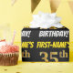 Den här pappra designen innehåller ett meddelande som "FIRST-NAMN's 35e BIRTHDAY!", där "35en" har ett utseende som liknar guld och liknar färg, och med namn och "BIRTHDAY" i en roligt med fet stil. Namn kan anpassas, och bakgrunden är svart på färgad. Att packa pappert som detta kan kanske användas när man fyller på födelsedagskalkyl som ges till någon i firande på deras trettiofemte födelsedag. [~Z0000203]