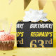 Den här pappra designen innehåller ett meddelande som "REGINALD'S 63:e BIRTHDAY!", där "63:e" har ett utseende som liknar guld och liknar färg och med namn och "BIRTHDAY" i ett roligt, fet stil. Namn kan anpassas, och bakgrunden är svart på färgad. Att packa pappert som detta skulle kanske kunna användas när man fyller på födelsedagskalkyl som ges till någon i firande på deras sextiotredje födelsedag. [~Z0000203]
