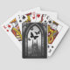 Svarta fjärilar fladdrar ut genom en välvd fönsteröppning, med en gotisk katedral i bakgrunden på denna vackra, svart-vita kortlek. Perfekt att stoppa i julstrumpan!