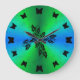Svart fjäril på regnbåge i grönt i läderoptik stor klocka