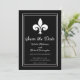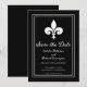 Elegant och enkel Bröllop spara datum inbjudan med en fleur de lis mot en svart bakgrund. Denna design är ett unikt val för att tillkännage ett modernt bröllop. Lätt att anpassa med dina bröllopsdetaljer. Klicka på "Anpassa" för att hitta fler anpassningsalternativ.