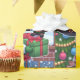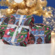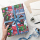 Hon tände på papper design med en svart animerad-flicka i festlig stil, ansikte tände med glädje när hon stolt visar upp sin nyinslagna svart-baby-docka. Tecknad snöflingor och festligt inslag skapar en lekfull bakgrund som fångar det magiska med gåva-ge under julhelgen.