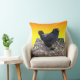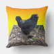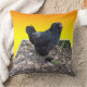 Chicken, Cushion, som finns på en bakgrund av guldfärgad gult är en svart fluffy-kyckling i en dimensionell Popout-design, https://www.zazzle.com.au/naturalcauses*