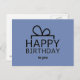 Svart "Grattis på födelsedagen till dig" text på blå och en presentboxsymbol.