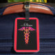 Personligsjuksköterskan som den färgrika Caduceusläkarundersökningsvarten hänger lös märkren, gör en underbar gåvaidé för sjuksköterskor, sjuksköterskapraktiker, doktorer eller någon i det medicinska yrket. Bagaget hänger lös märkren är designat med en färgrik rosa, lilor, och symbolet och namn för guld- caduceus för gult skrivar det medicinska i vit svart bakgrund.