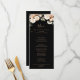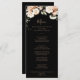 Detta svarta högtidliga menykort för blommigt av royal är perfekt för ett modernt bröllop. Utformningen har vattenfärgsblommor, och vita eleganter med löv för grönt. Den här menyn kan användas för bröllopsmottagning, repetitionsmiddag, möhippa eller vilken händelse som helst.