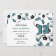 Den här söta fotbollens temainbjudningsfunktioner arrangeras slumpmässigt av teal-, svartvitt- och vita fotbollar på högerna och överst kant på framsidan och täcker baksidan av inbjudan - anpassa detaljerna om party på vit bakgrund - av katz_d_zynes