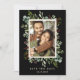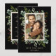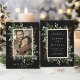 Svart foto från botanisk grönska på vinterbröllop spara datumet