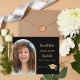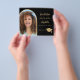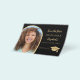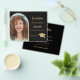Observera att det här Spara datumet är pappert och mycket tunt. Kuvert ingår inte. Om du vill ha tjockare Spara datumkort (samma design) kan du besöka vår butik. Ett foto Spara datumet för en studentfest. På framsidan: Lägg till ett eget lodrät storlekt foto av student. En faux guld fotoarch ram. En klassisk svart bakgrund, gyllene text. Mallar för namn och datum. Namn och texten: Spara datumet är skrivna med ett modernt handskript i stil. Tassel topper med lock. Tillbaka: Information om party.