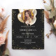 En modern, snyggt och glamorös inbjudan till en 21-födelsedagsfest (eller vilken ålder som helst). En svart bakgrund, dekorerad med faux guld glitter-gnistor och guldballonger. Anpassa och lägg till information om namn, foto och party. Ett foto från stil, ram. 1 lakan = 1 inbjudan tryckt kant till kant