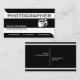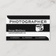 Affärskort för fotografisk kamera, svart, vitt, öga-och-infångande, med en fotografisk kamera i vitt på svart och vitt rand och texten Fotograf. Ett affärskort av underbar professionell för fotograf- eller fotobranschen och tjänster.
