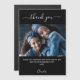 En svart bakgrund färg. Vita, stora bokstäver med dekortecken och text: Tack. Anpassa och lägg till foto, tackkort och namn.