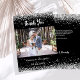 Gratulera till din speciella dag och uttrycka din djupa tacksamhet till vår Anpassningsbar Photo Bröllopskort, elegant designad med en sofistikerad svart bakgrund och förtrollad med faux silver konetti. Perfekt för att dela dina favoritminnen i bröllop, de här korten är både snyggt och personligt, vilket är ett unikt sätt att tacka dina gäster. Anpassa och lägg till ditt foto och tackkort.