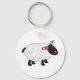 Ett svart belagt får med massor av vit ull och en blomma i håret. Den här designen ser ut att vara effektiv i den här nyckelkedjan