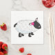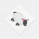 Ett svart belagt får med massor av vit ull och en blomma i håret. Den här designen ser ut att vara effektiv på dessa Pappra servetter