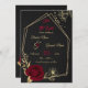 elegantens romantiska burgundblommor och guld löv på ett geometriskt ram svart sparar datuminbjudan