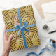 En svart geometrisk art-deco mönster över guld tonbakgrund..