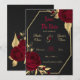 elegantens romantiska burgundblommor och guld löv på ett geometriskt ram svart sparar datuminbjudan