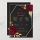 elegantens romantiska burgundblommor och guld löv på ett geometriskt ram svart sparar datuminbjudan
