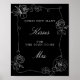 Svart Gissa hur många kyssar Bröllopsdusch spel Affisch. Matchande föremål tillgängliga. Se hela kollektionen här:https://www.zazzle.com/collections/black_and_white_modern_florals_collection-119316588023779707
